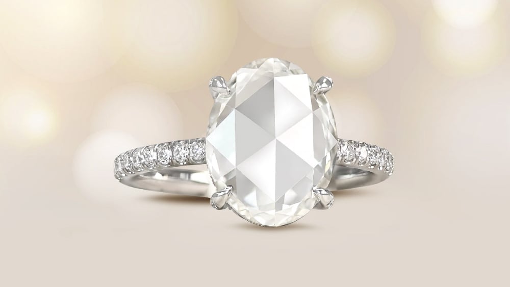 The exquisite Bel Air ring is a delicate beauty, featuring a 3.02-carat oval-shaped rose-cut center diamond. The GIA-certified center diamond has I color and VS2 clarity, while the under-gallery boasts a hidden halo that accentuates the diamond’s beauty. Finally, this ring is handcrafted in platinum and showcases additional micro-pavé set diamonds, which perfectly complement the ring’s overall design.