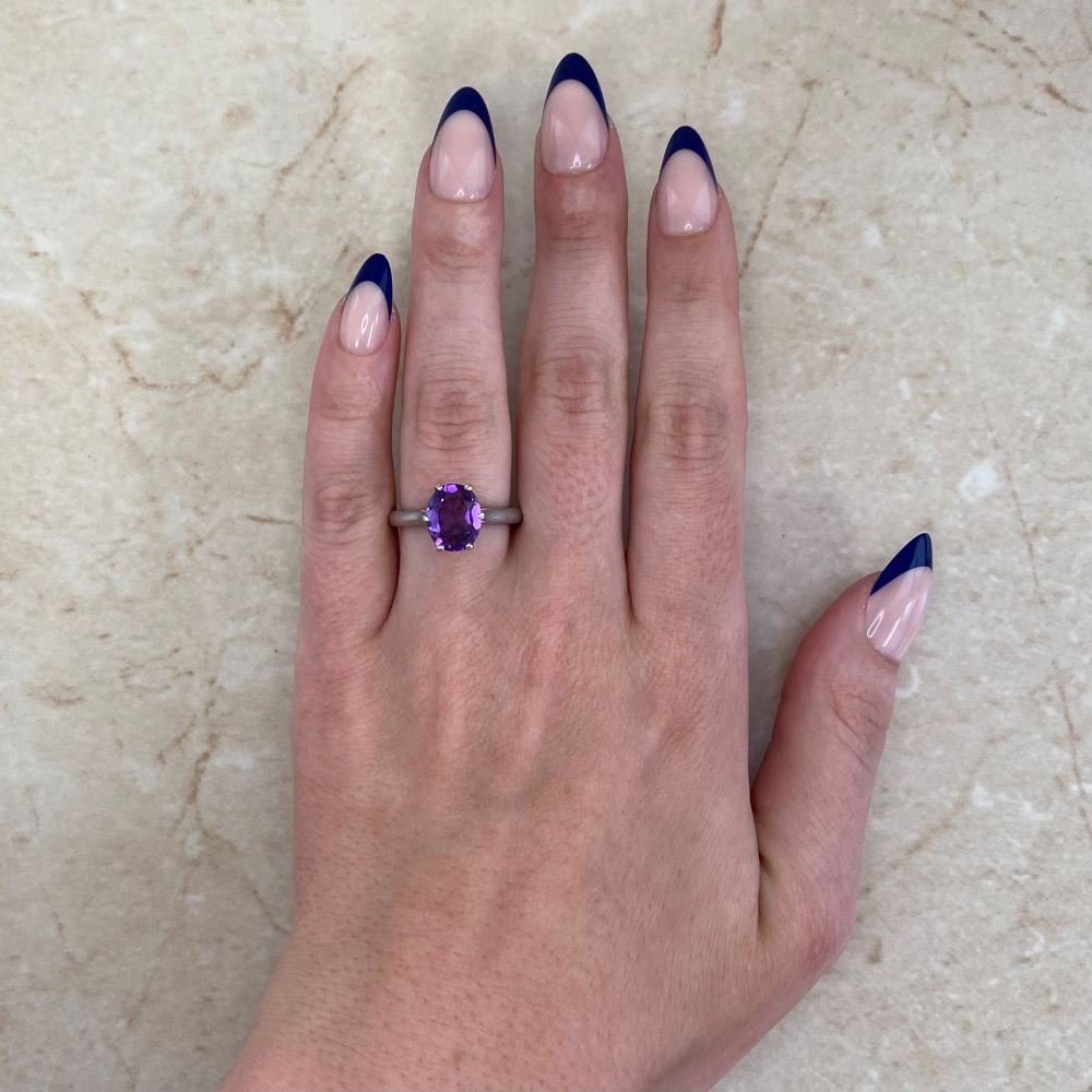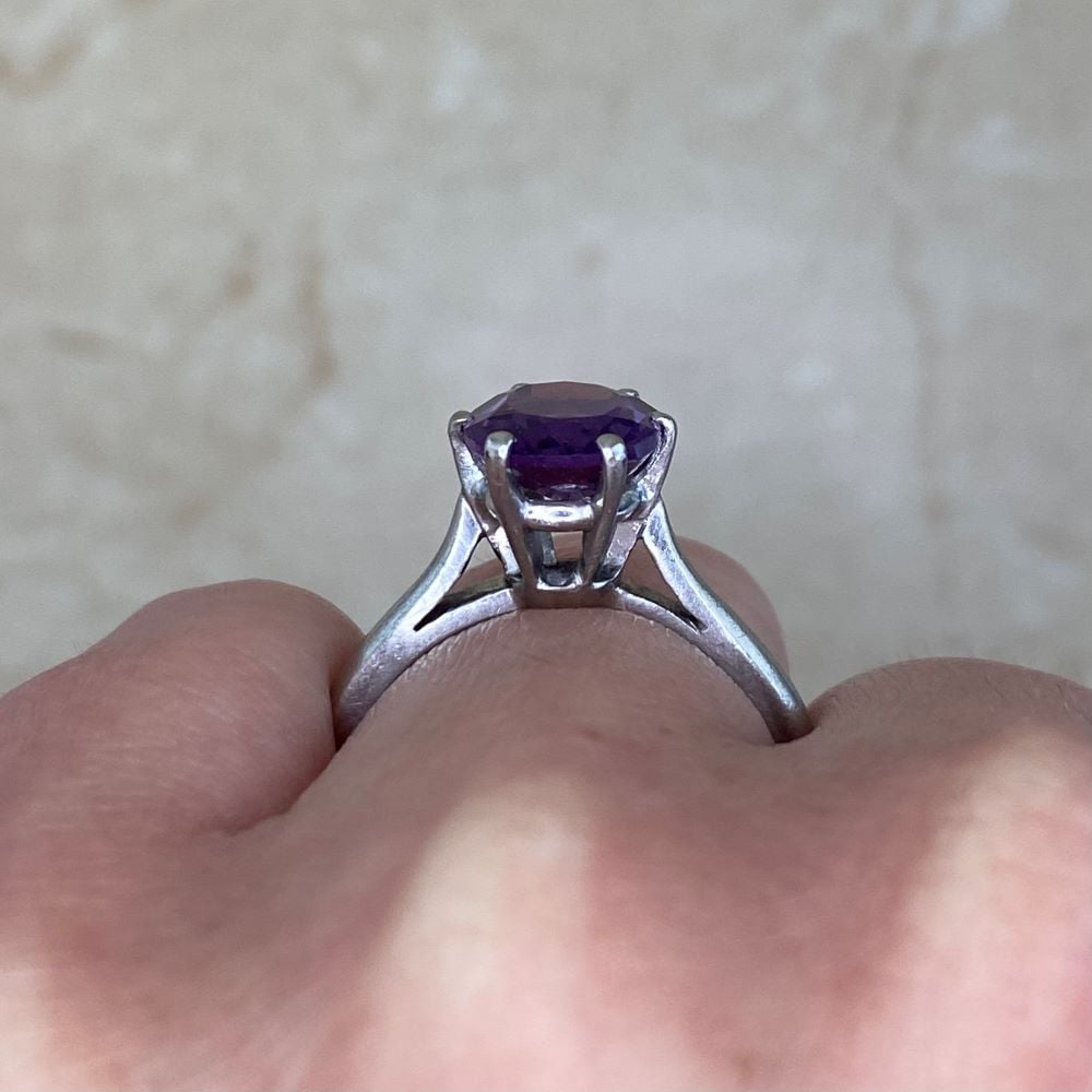 French Vintage 2.08ct Oval Cut Amethyst Acton Ring, Circa 1950
