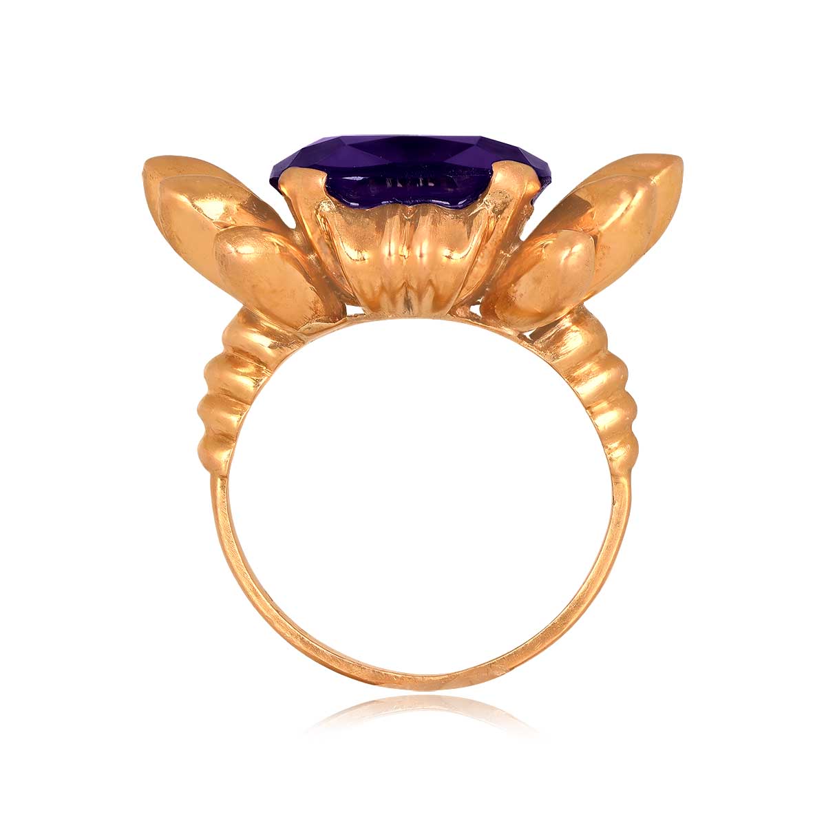 A Word from the Jeweler: I love how boldly Retro this design leans true to the era, especially the sculptural, high-impact goldwork. The oversized purple center stone gives it that unmistakable statement look that collectors always seem to chase.