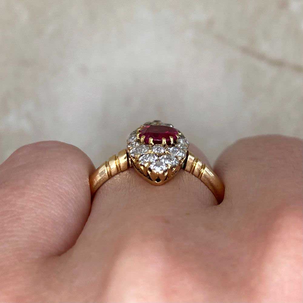 Home / Shop Estate Jewelry Collection / Vintage Engagement Rings / Victorian Era GIA Ruby and Diamond Alcova Ring, Circa 1880