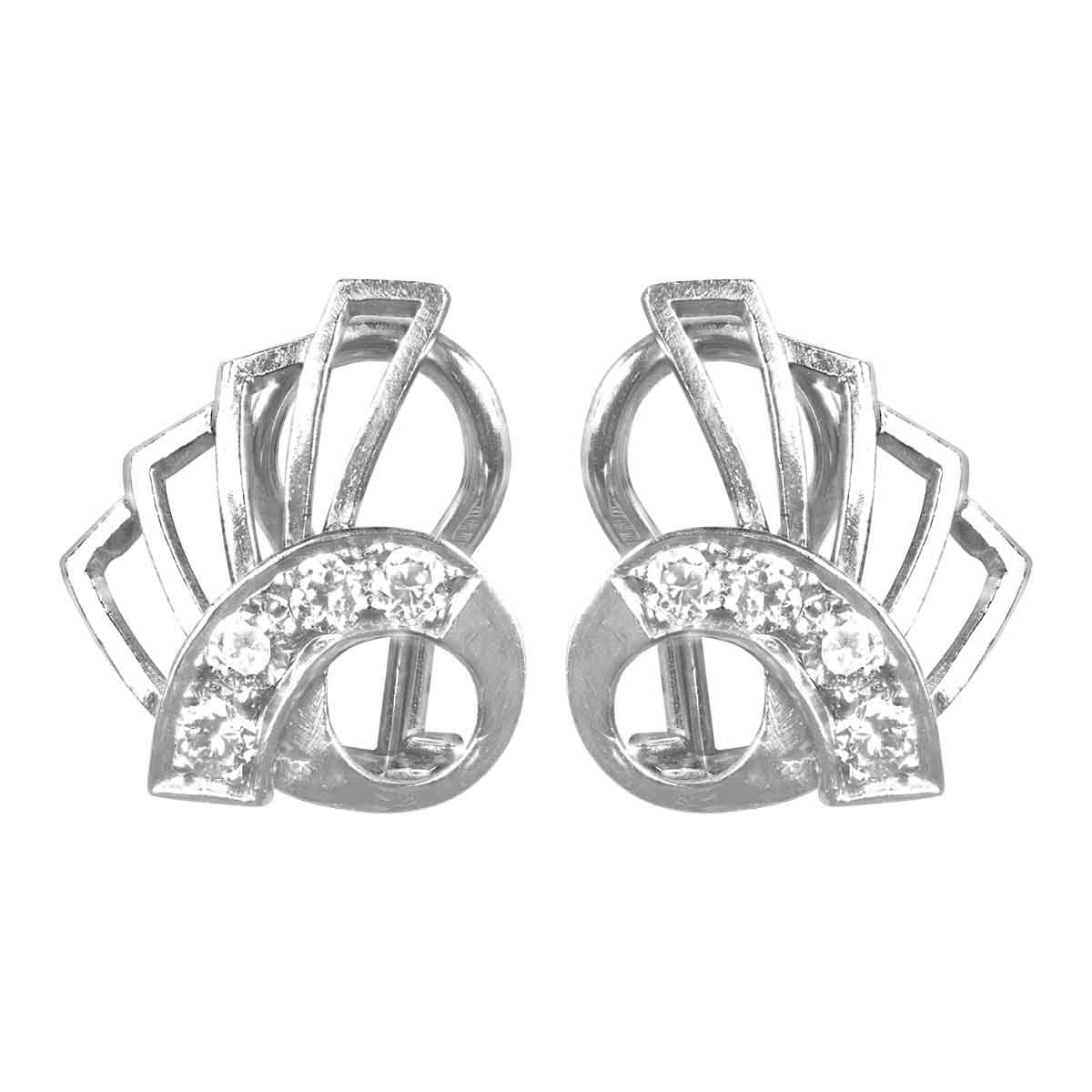 Vintage White Gold Diamond Balteiro Earrings, Circa 1950