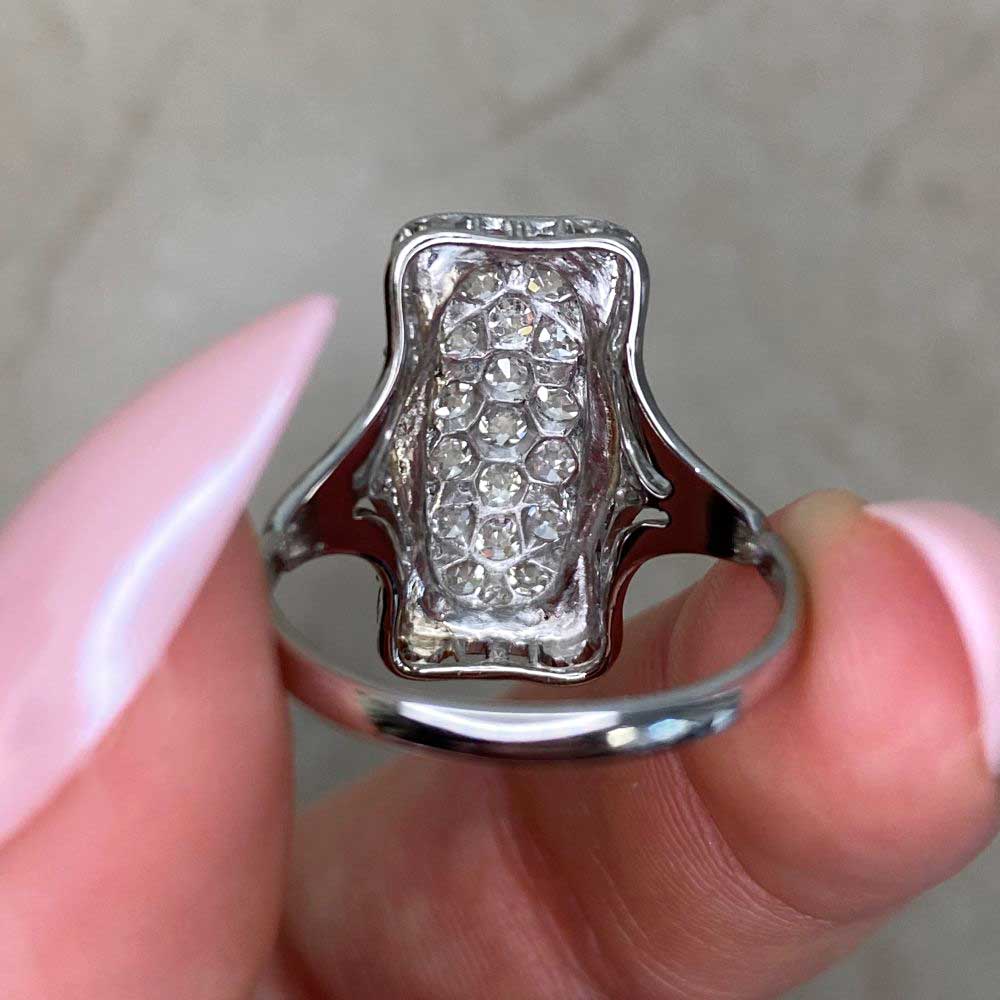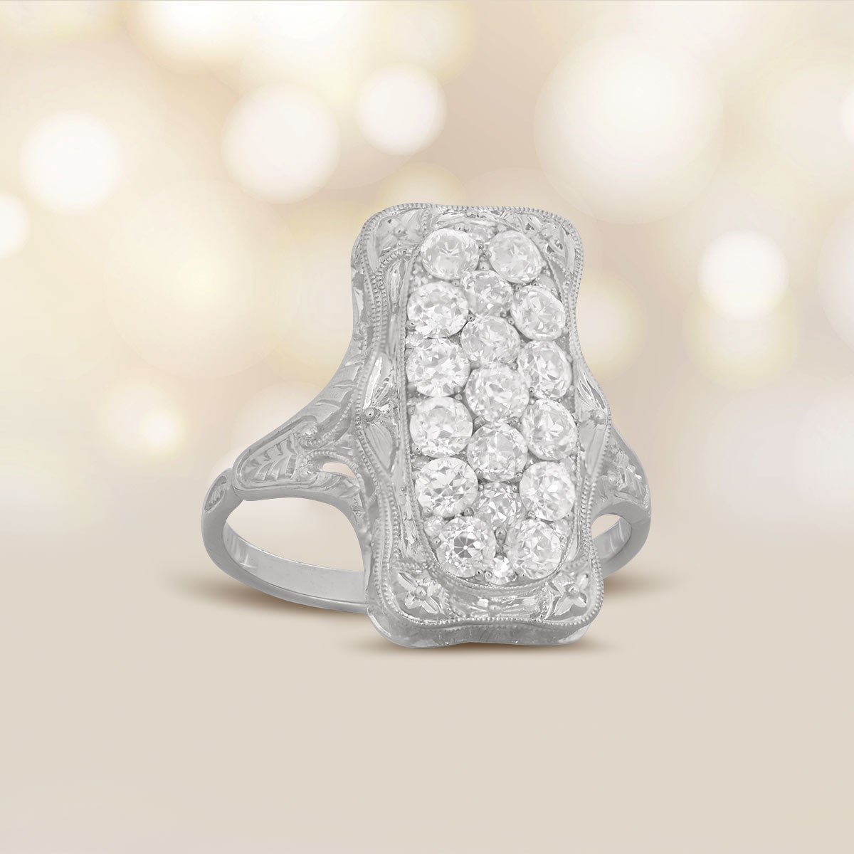 Old European Cut Diamond Elongated Platinum Barclay Ring
