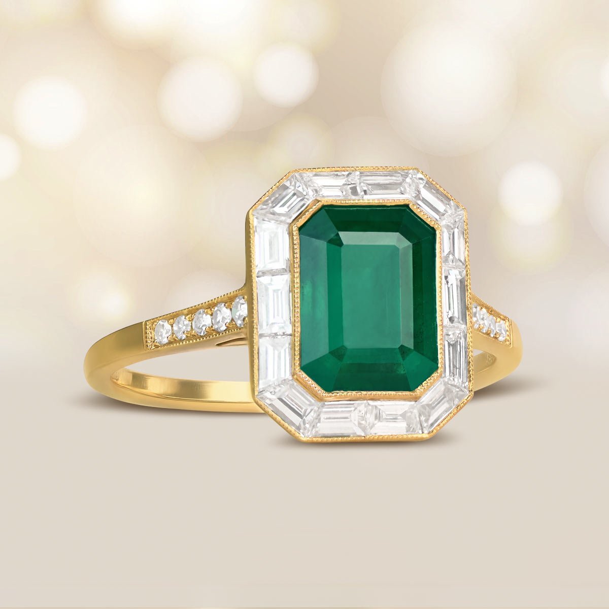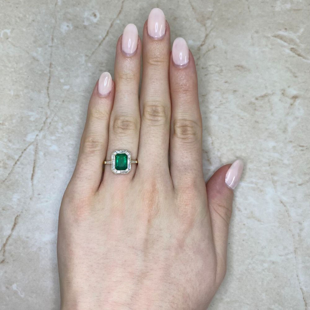 2.00ct Emerald and Baguette Halo Burnaby Ring