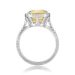 A Word from the Jeweler: I’m especially drawn to the fancy yellow center stone in this ring, its soft cushion shape gives the color a warmth that adds to its richness. The surrounding halo creates a balanced frame that enhances the presence of the center stone without overwhelming it.
