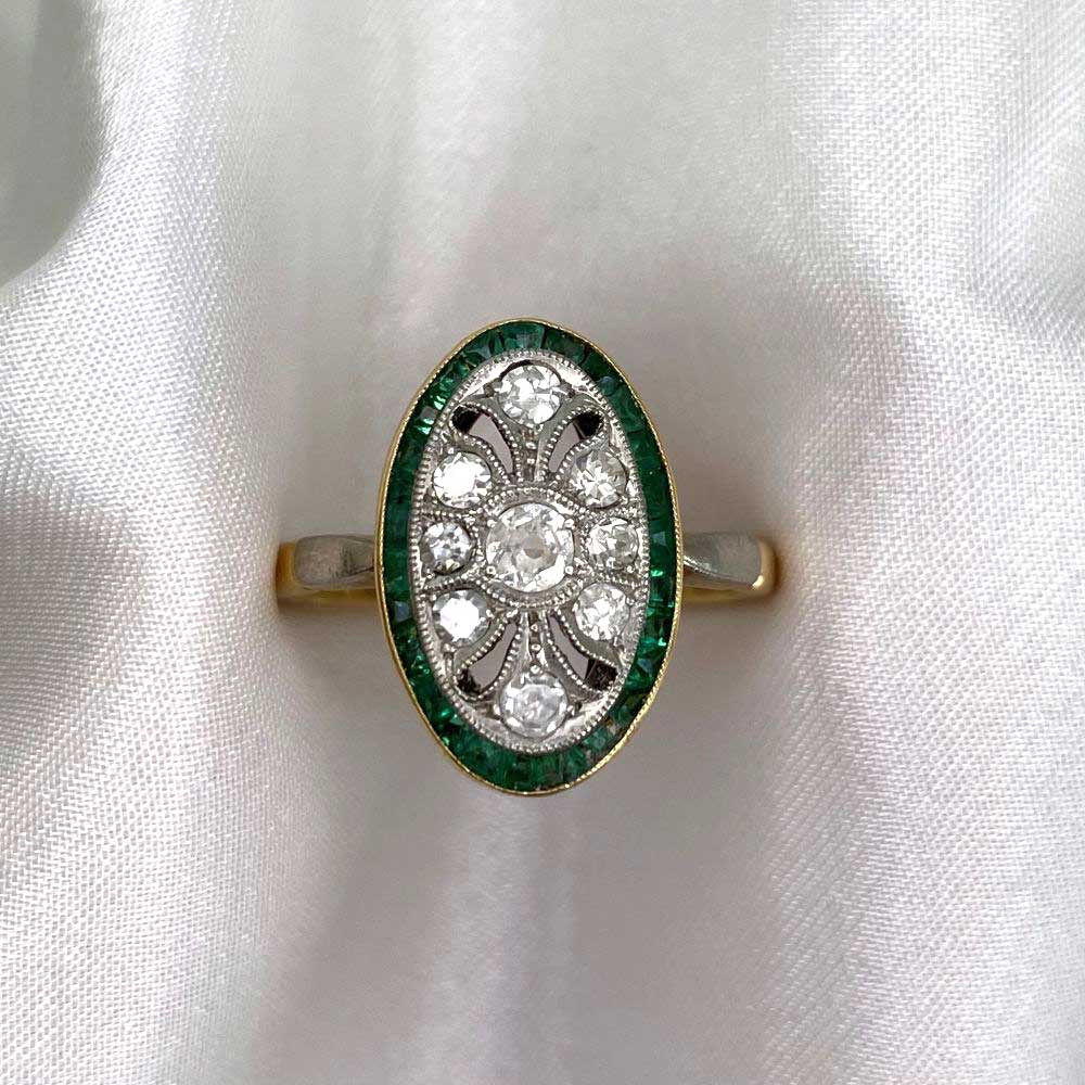 Home / Shop Estate Jewelry Collection / Vintage Engagement Rings / Edwardian French Diamond and Emerald Canalou Ring, Circa 1910