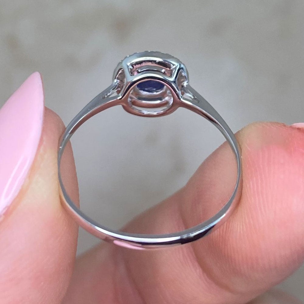 Home / Shop Estate Jewelry Collection / Vintage Engagement Rings / Sapphire and Diamond Halo Caney Ring