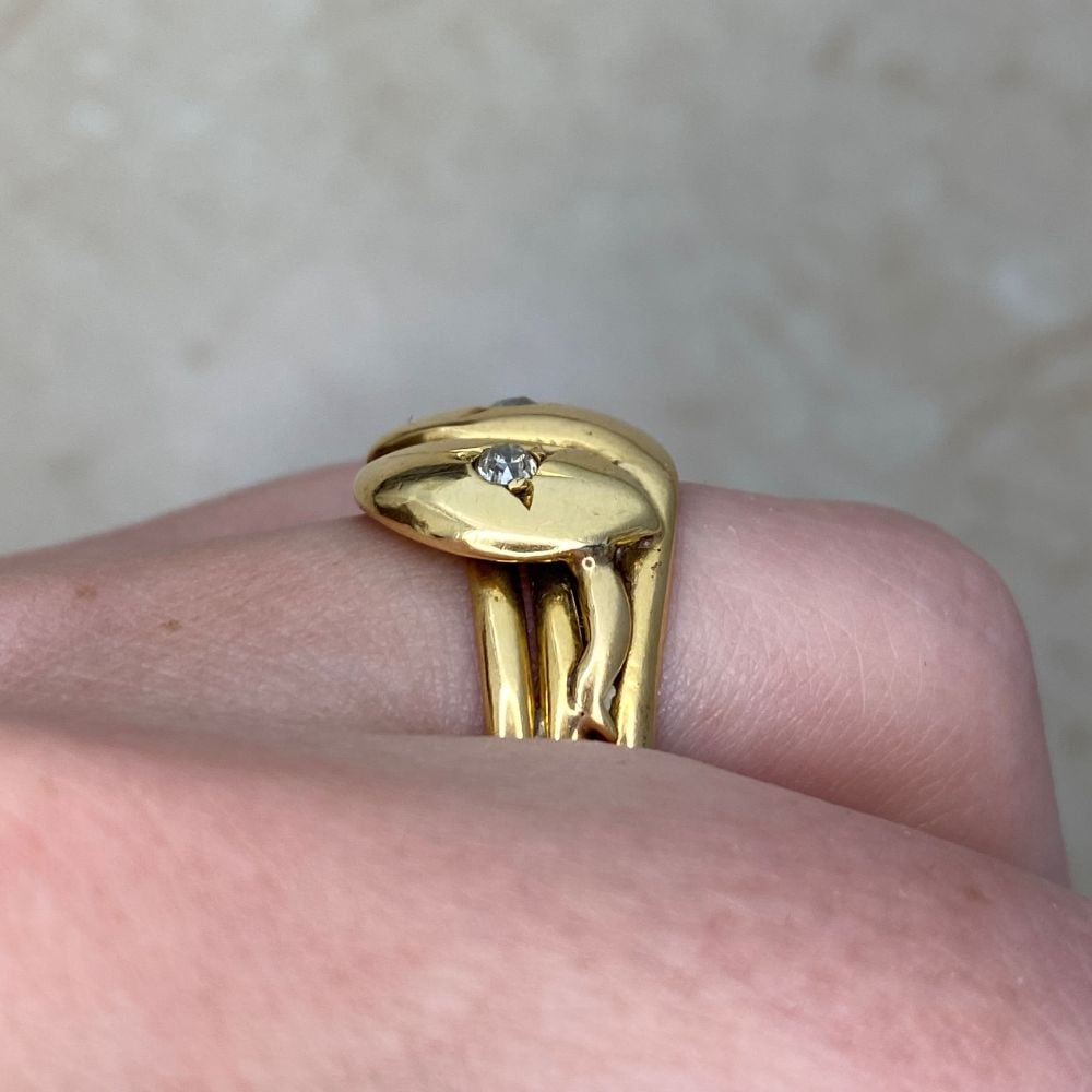 A Word from the Jeweler: The craftsmanship in this Victorian double head snake band is remarkable, with each head carefully formed to create perfect symmetry. I’m drawn to how it carries both the artistry and sentiment that made snake motifs so treasured in the 19th century.