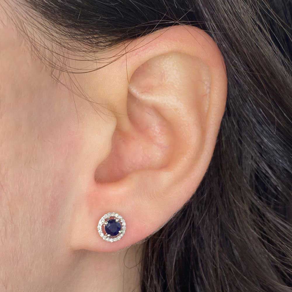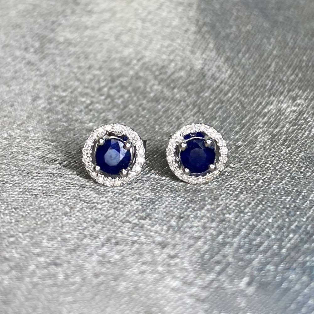 Sapphire and Diamond Halo Stud Clough Earrings