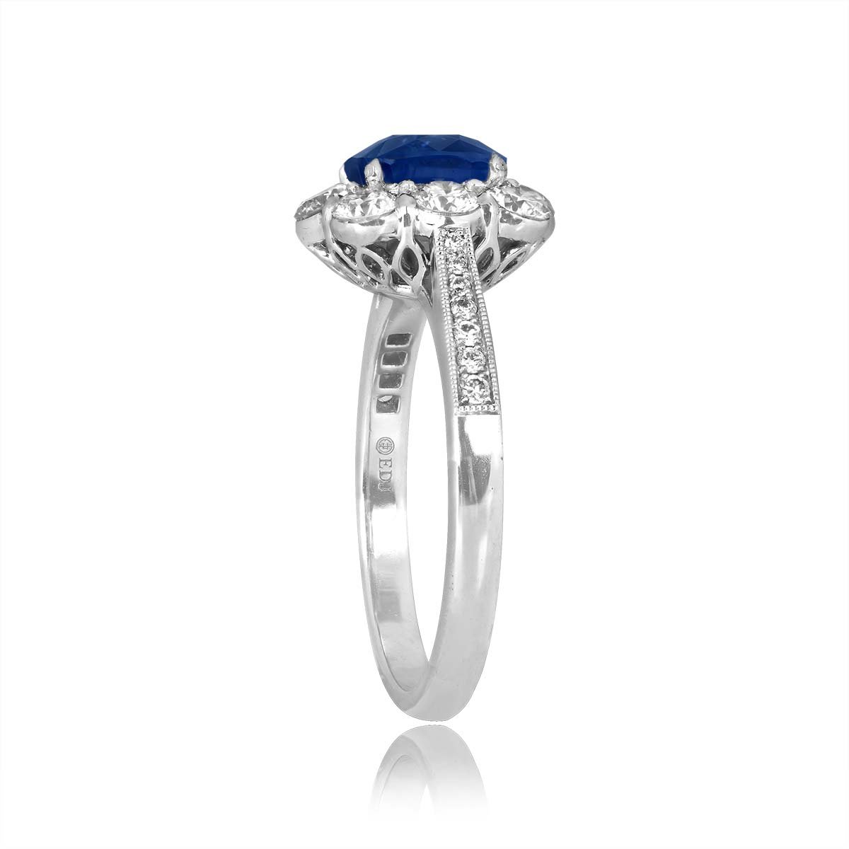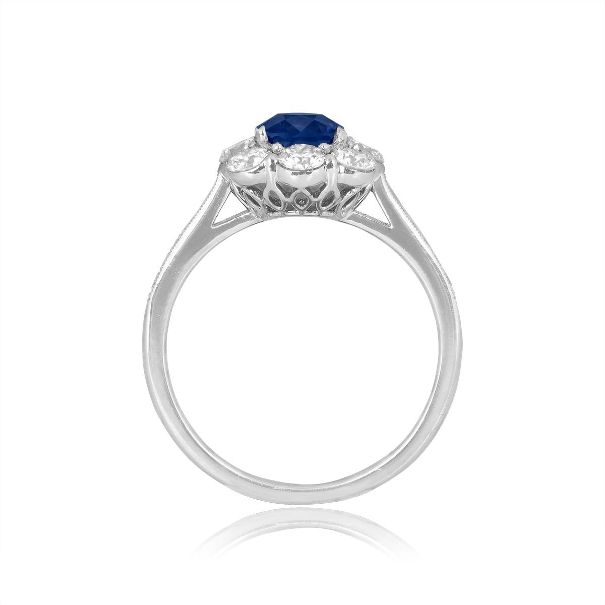 A Word from the Jeweler: We chose this ring because the Kashmir sapphire at its center is truly exceptional, showcasing a rare and highly sought-after gemstone. The diamond cluster around the sapphire highlights the craftsmanship that defines vintage elegance.
