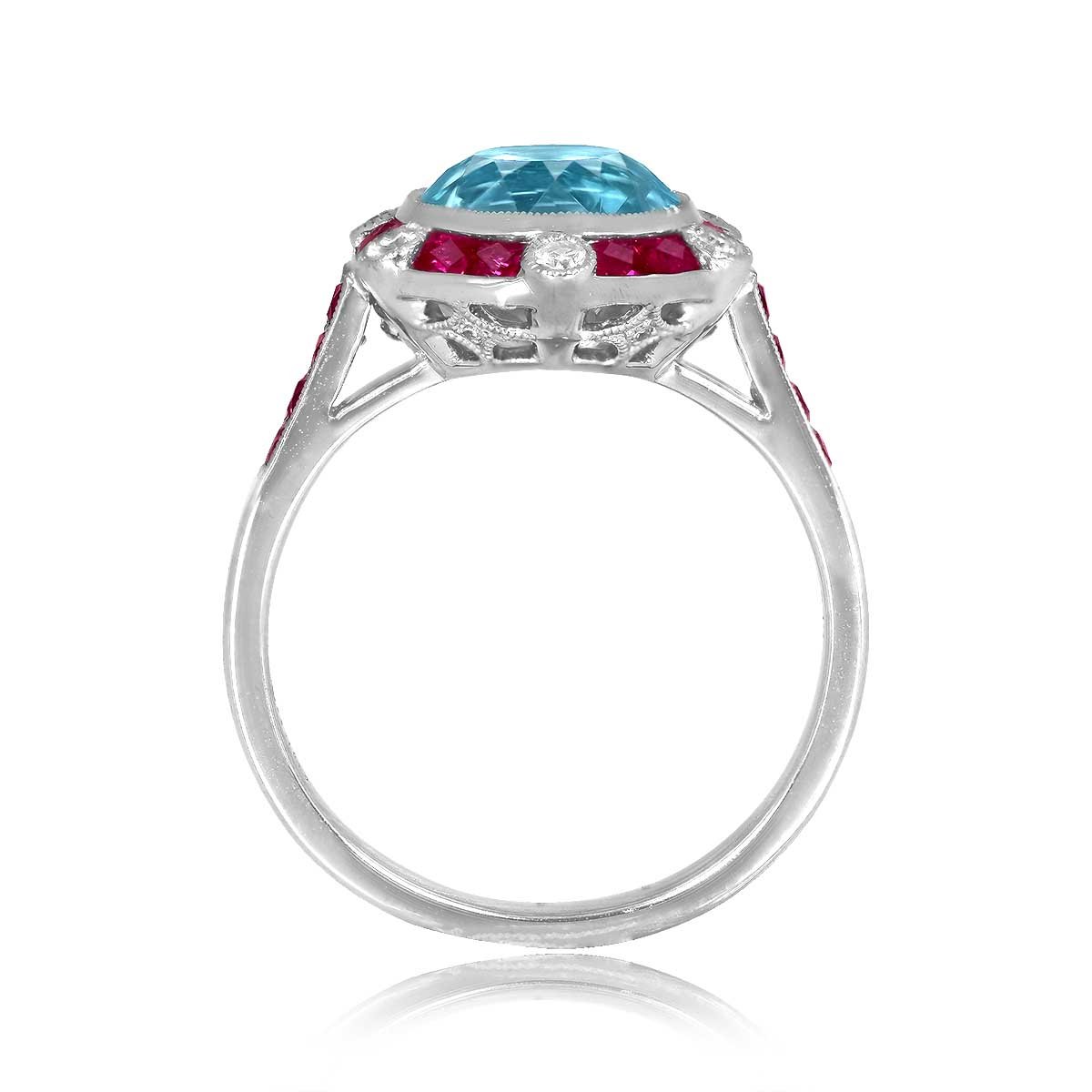 2.67ct Aquamarine with Ruby Halo Embden Ring
