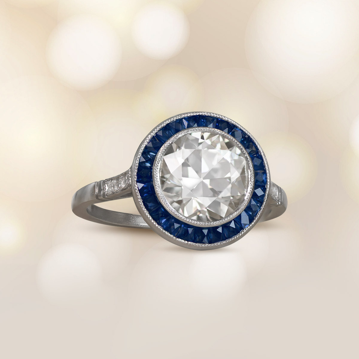 A Word from the Jeweler: The sapphire halo adds the perfect touch of color, creating a bold yet refined design. I really appreciate how the bezel setting enhances both the stone’s security and its striking presence.