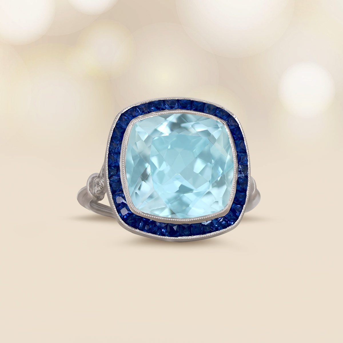 5.17ct Aquamarine and Sapphire Eureka Ring