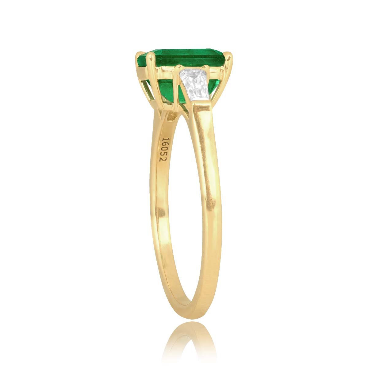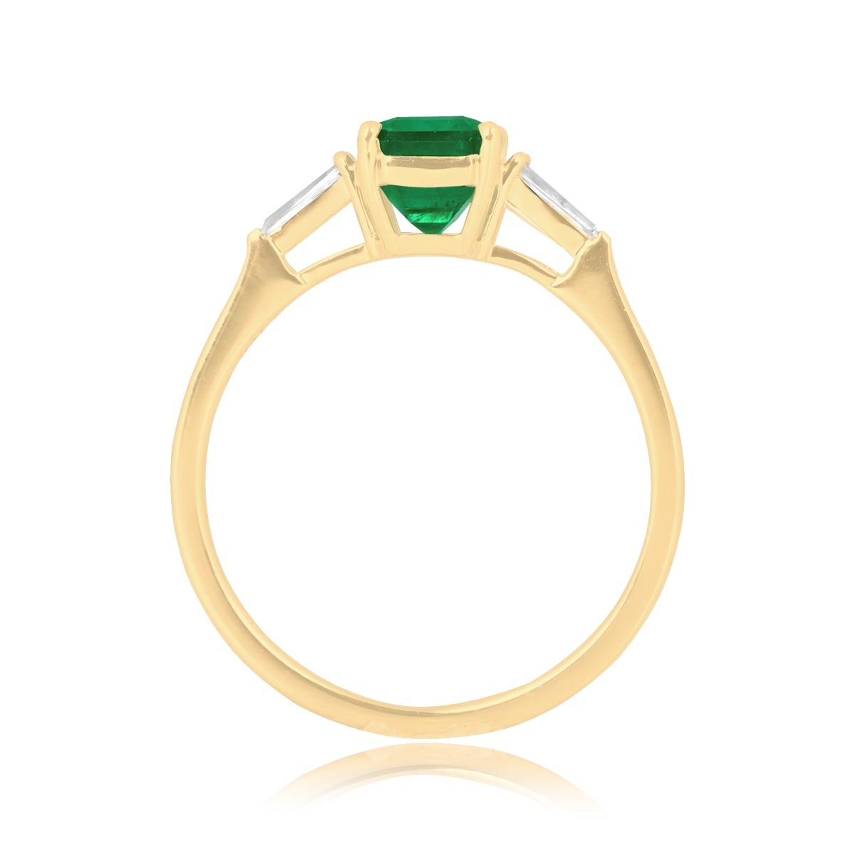 A Word from the Jeweler: I’m drawn to this ring because the emerald has a depth of color that truly stands out. The tapered baguette accents paired with the yellow gold setting give it a balance and elegance I personally love.