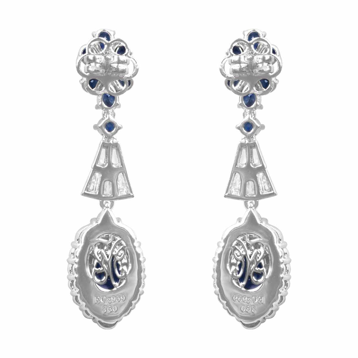 A Word from the Jeweler: I really admire how these earrings blend floral and geometric elements in a balance that feels both graceful and striking. The sapphires have such a rich hue that they pair beautifully with diamond jewelry, especially a line bracelet or pendant.