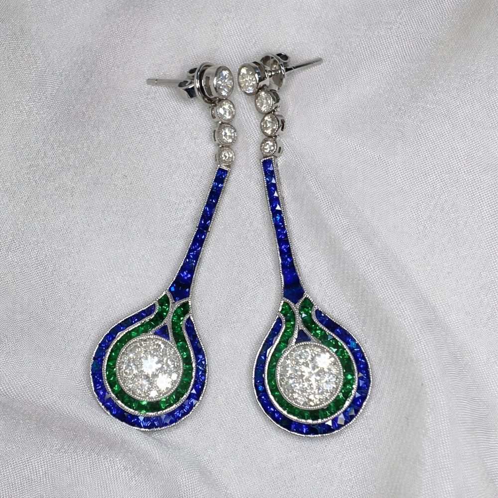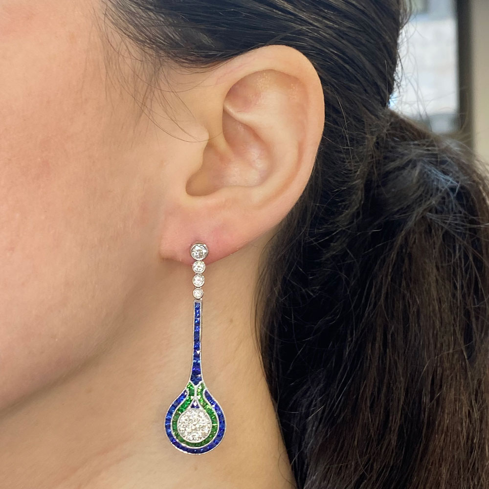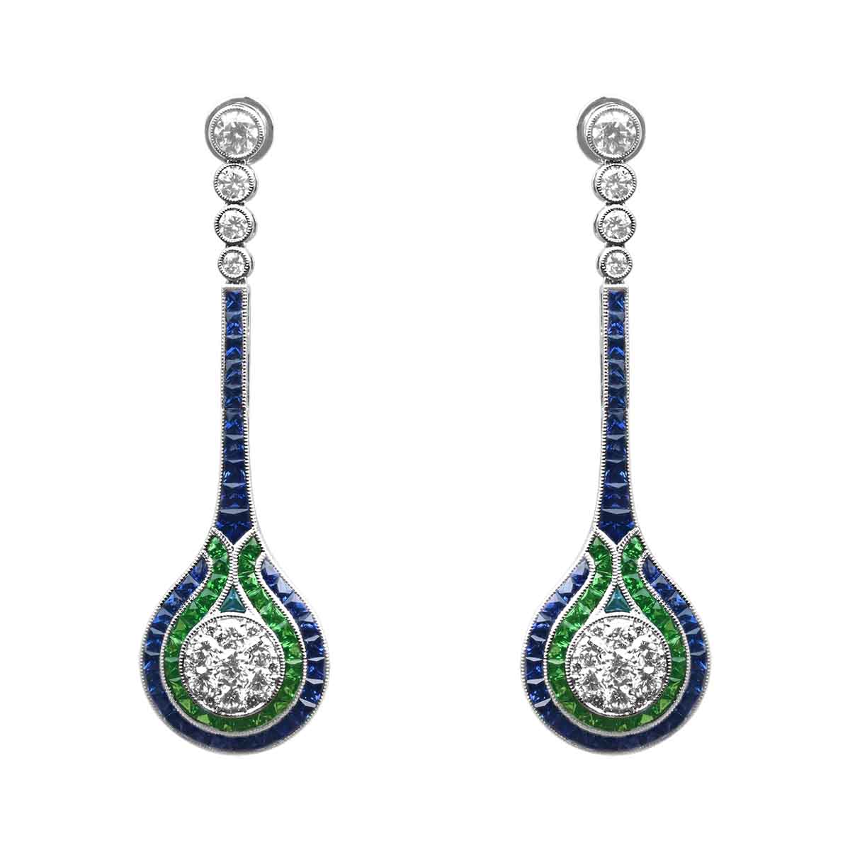 Elongated Sapphire, Tsavorite and Diamond Holborn Earrings