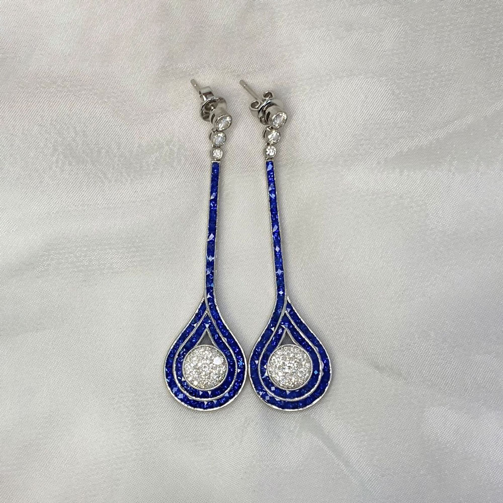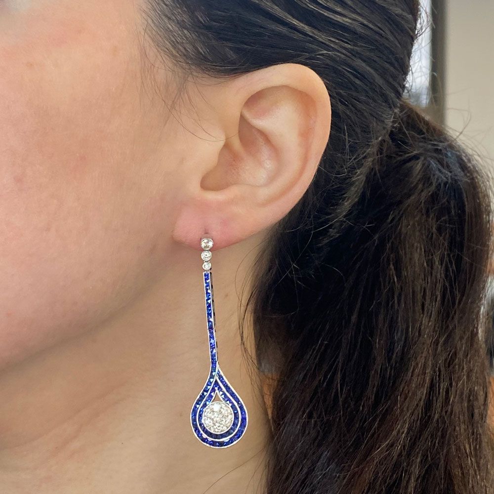 A Word from the Jeweler: There’s something so captivating about the elongated drop silhouette. I especially appreciate how the sapphires and diamonds are arranged to create a graceful flow, making these earrings a timeless addition to any fine jewelry collection.