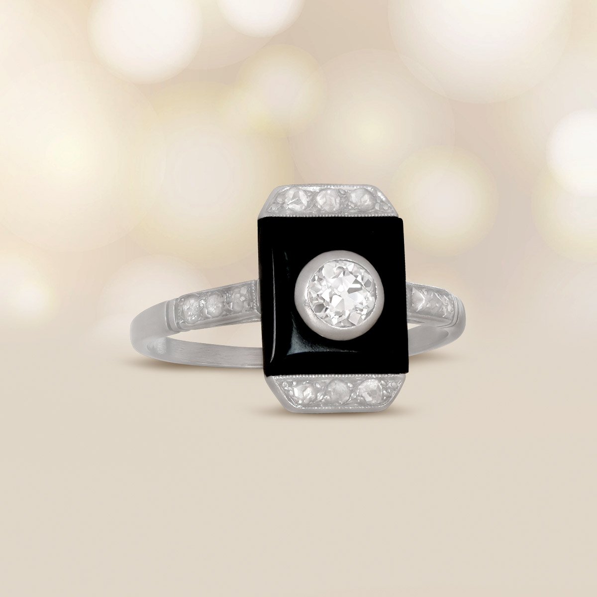 Art Deco Onyx and Diamond Lander Ring, Circa 1920