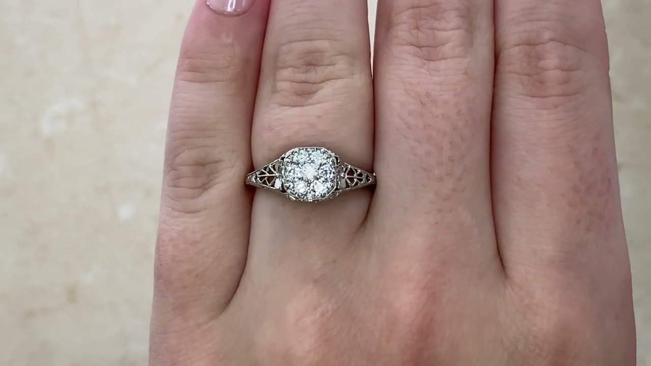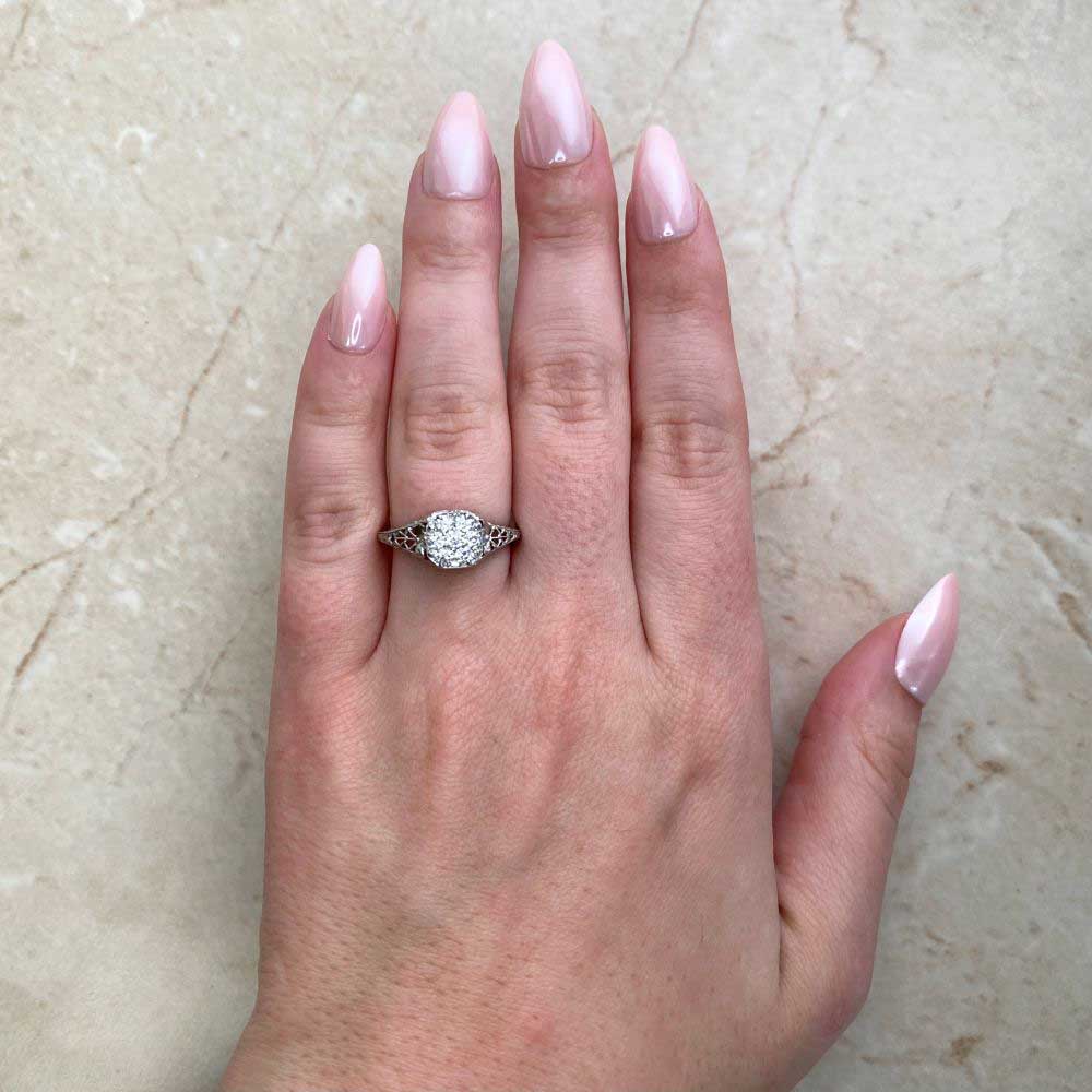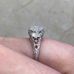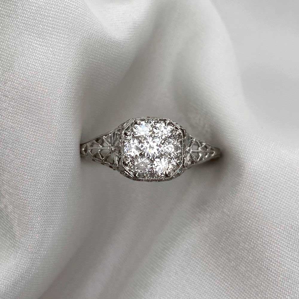 A Word from the Jeweler: I was drawn to the way the diamond cluster plays with light, giving off such an even, soft sparkle. The filigree work is beautifully done and shows the kind of precision that only comes from true craftsmanship.