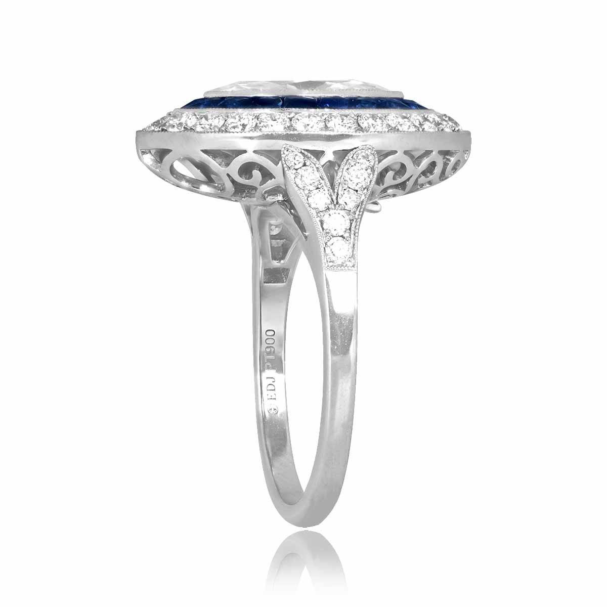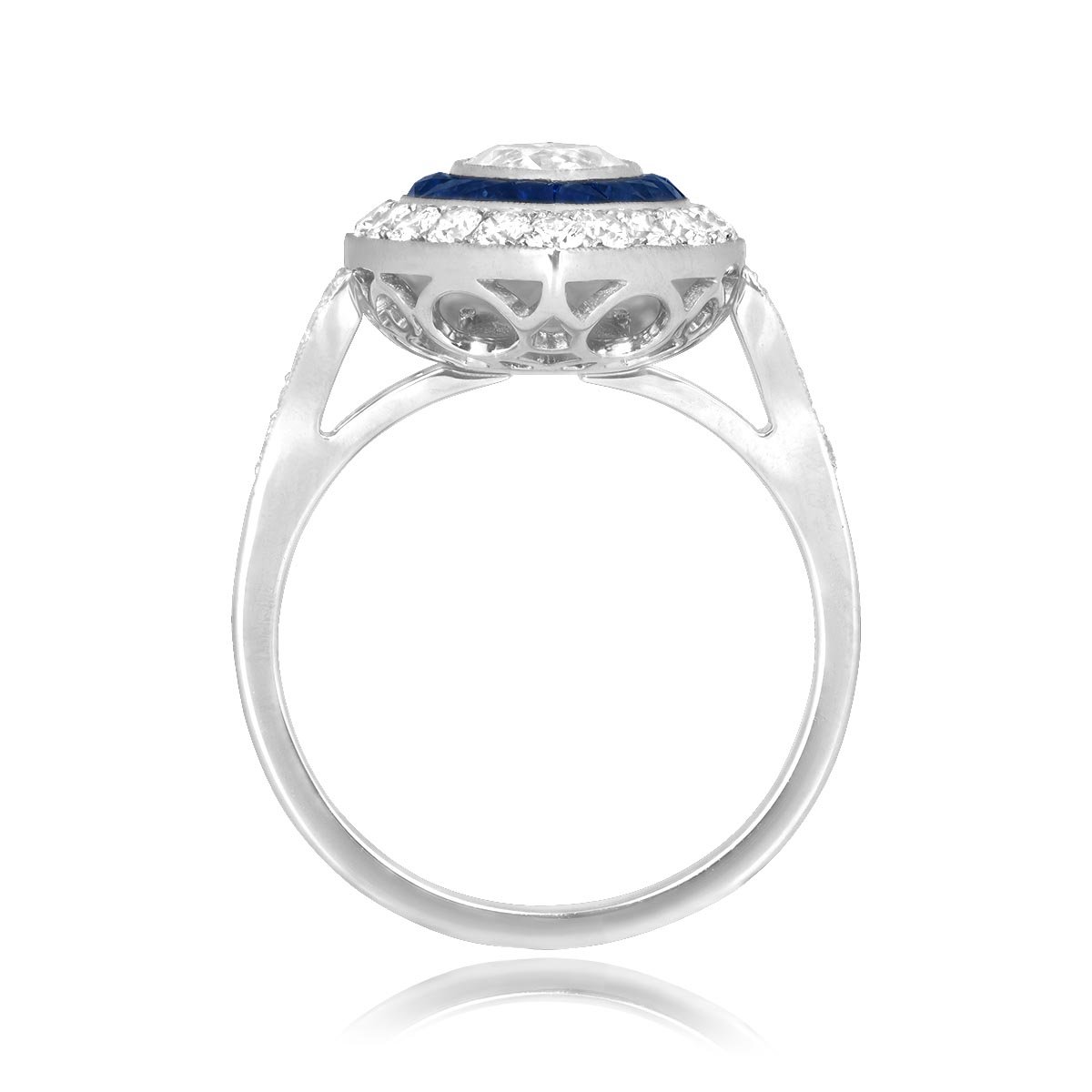 The sapphire stones weigh a total of approximately 0.71 carats. The additional diamonds weigh a total of approximately 0.80 carats.