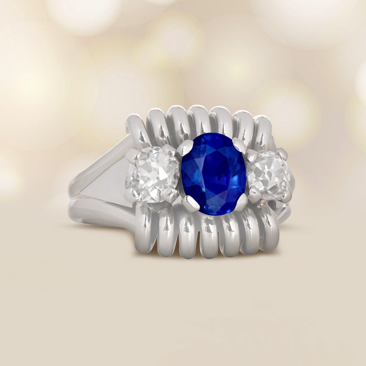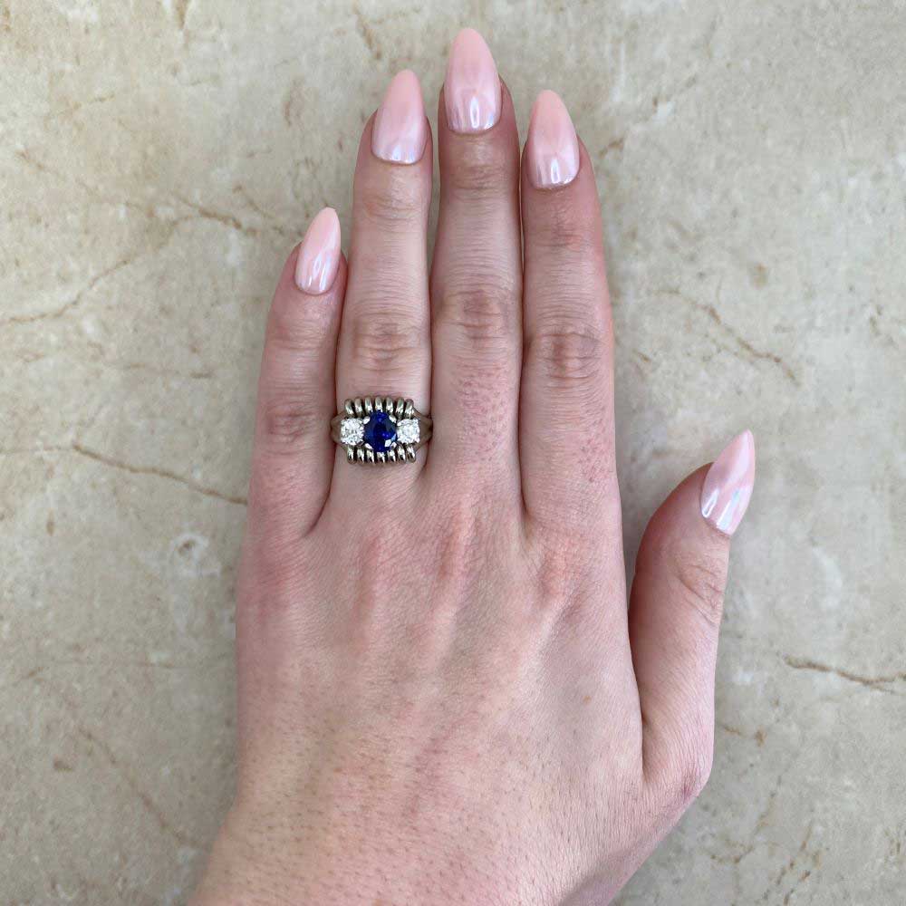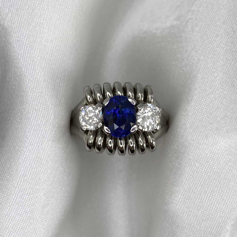 Home / Shop Estate Jewelry Collection / Sapphire Engagement Rings / Retro 1.28ct Sapphire and Diamond White Gold Midvale Ring