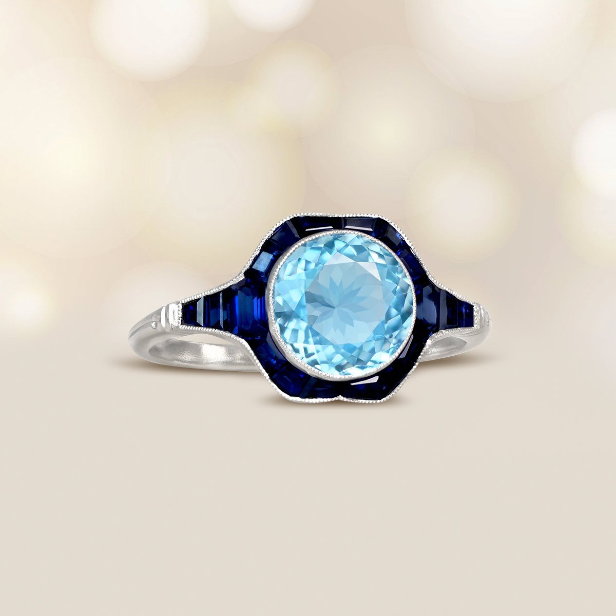 1.30ct Aquamarine with Sapphire Halo Minto Ring