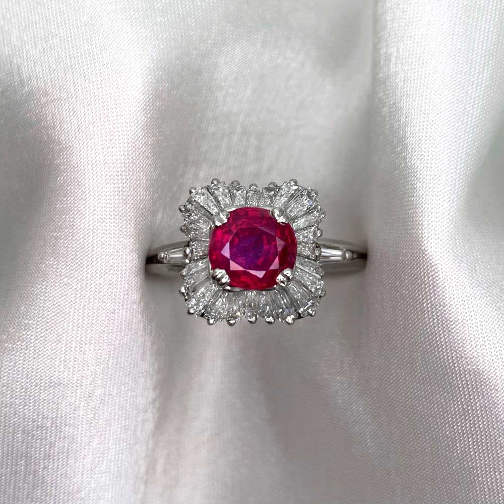 A Word from the Jeweler: I don’t come across Burmese rubies with this kind of saturation often, and the vivid color holds its own beautifully in the ballerina layout. We chose it for the collection because it’s rare to find a vintage version of this style with such a strong center stone.