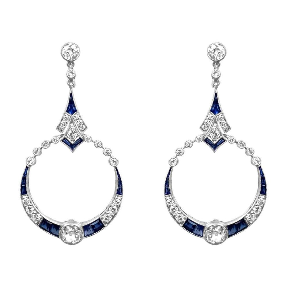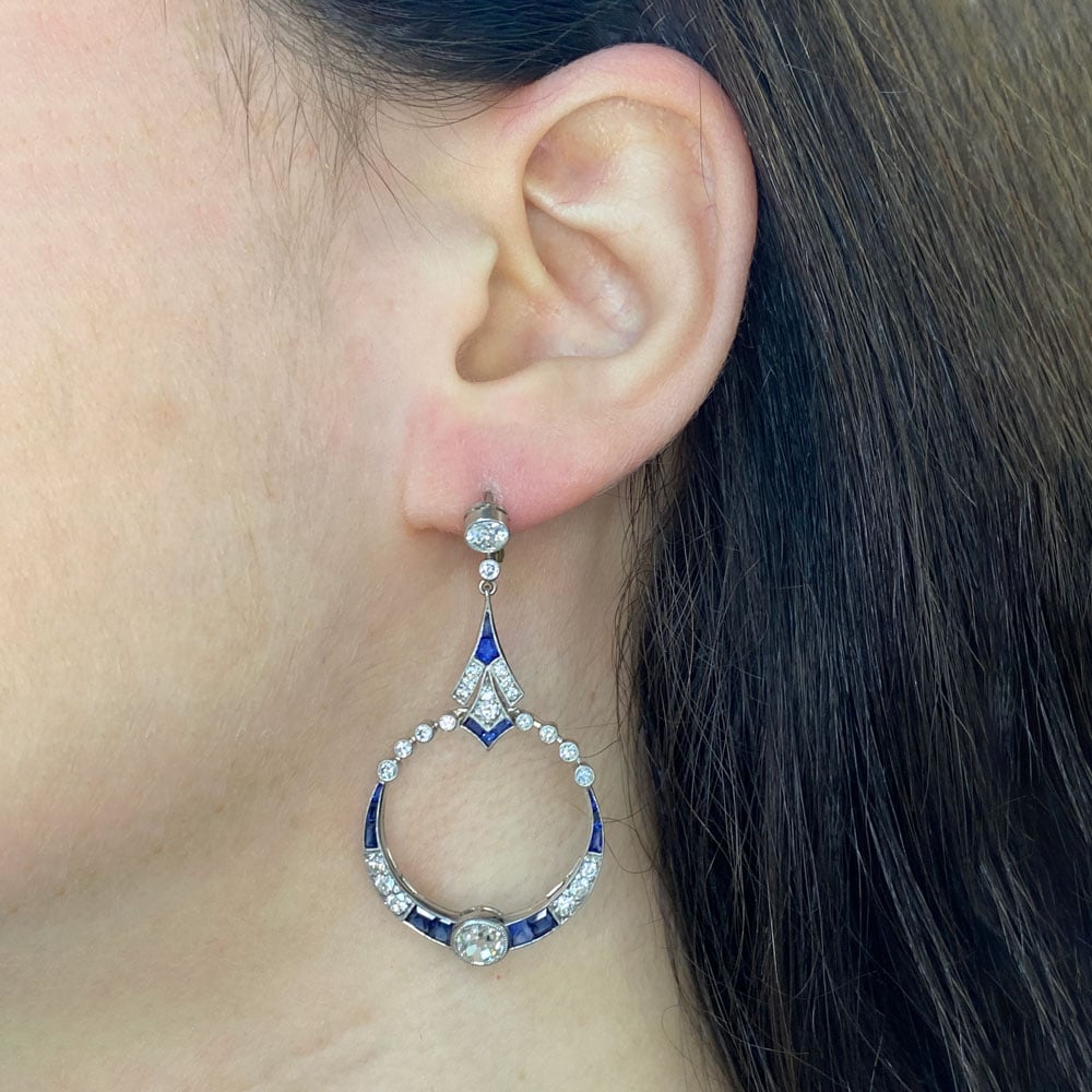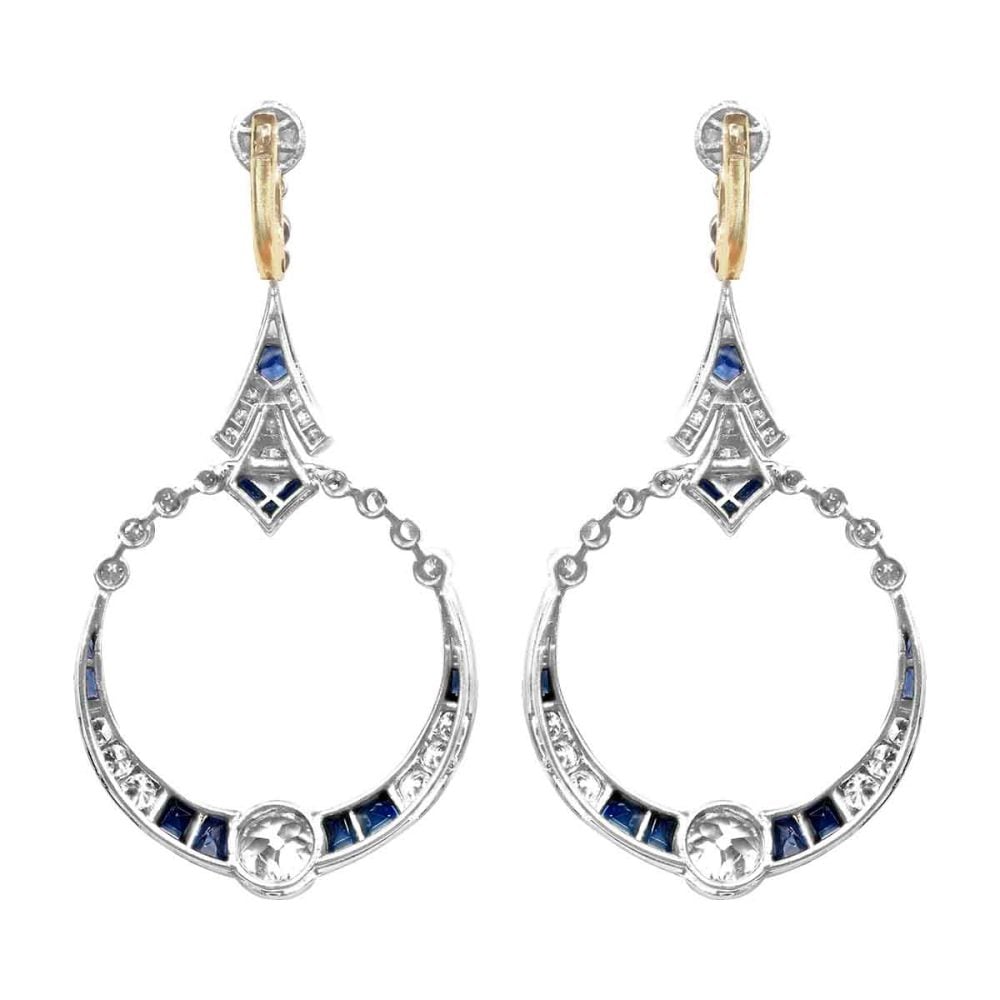 Antique Sapphire and Diamond Morvin Earrings, Circa 1920