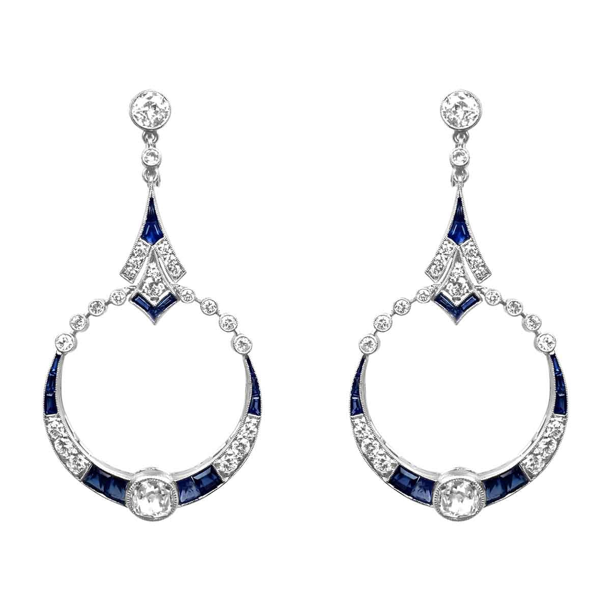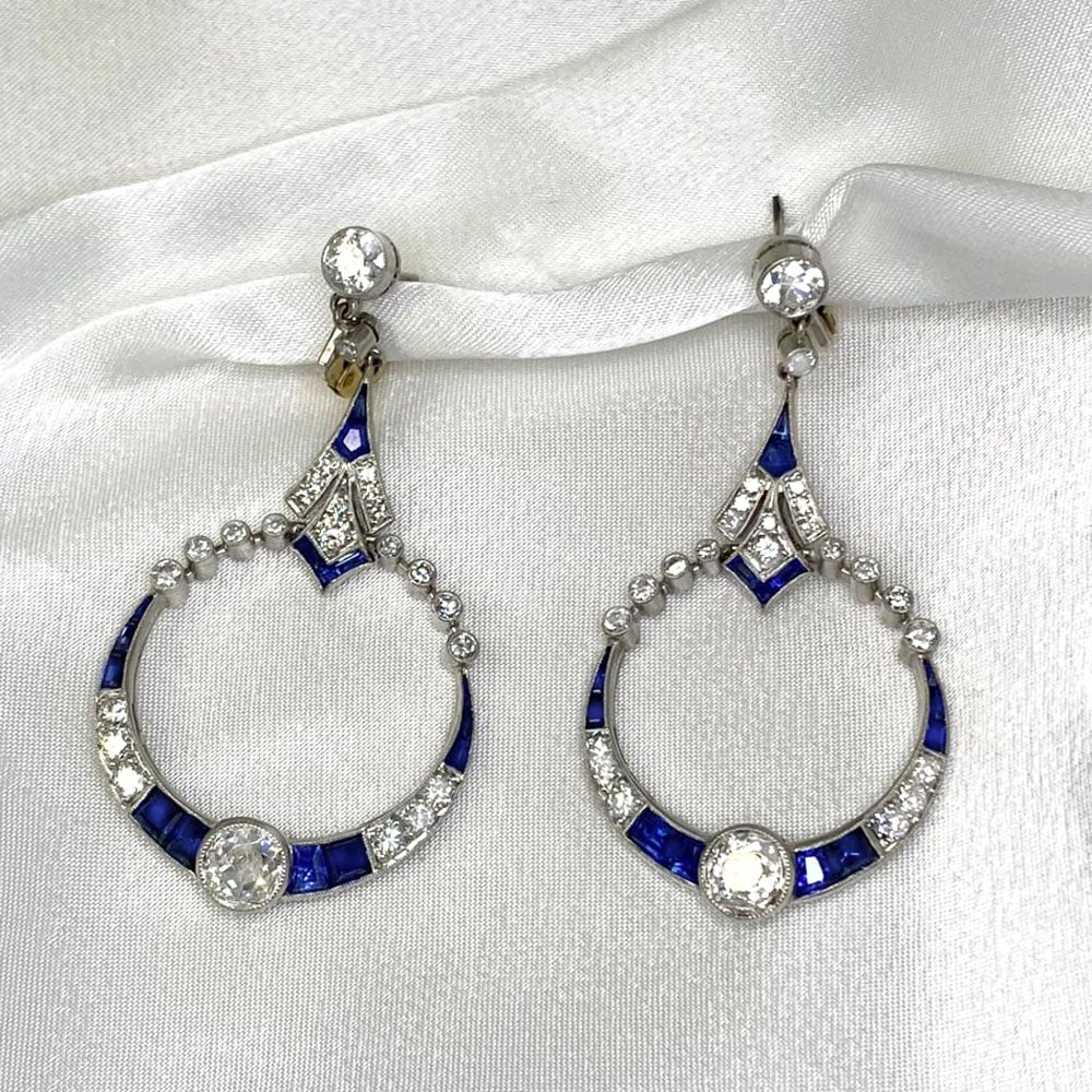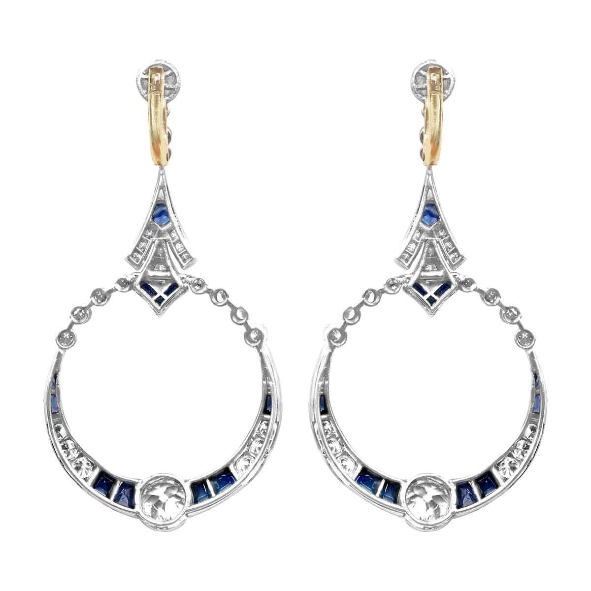 Antique Sapphire and Diamond Morvin Earrings, Circa 1920