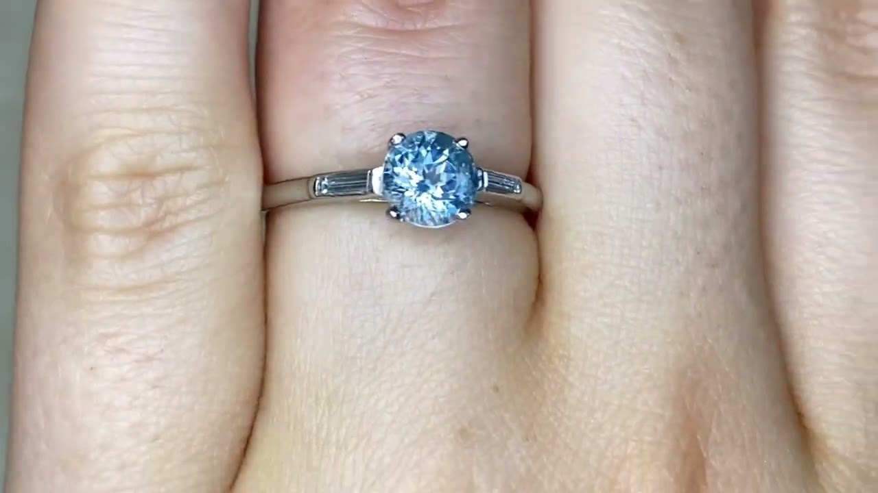 Vintage Platinum and 0.72ct Aquamarine Nashville Ring
