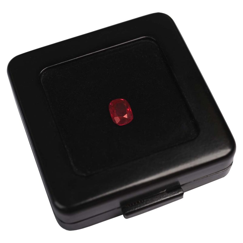 A cushion cut Burma ruby stone weighing 2.51 carats. This ruby stone is non-heated and has an SSEF certificate.