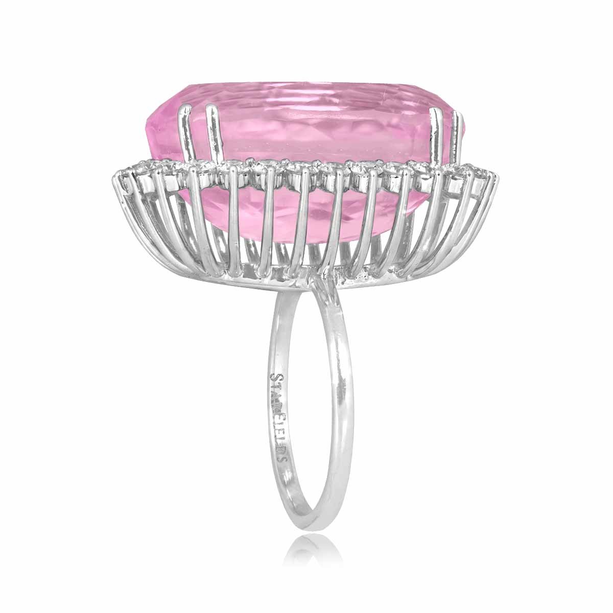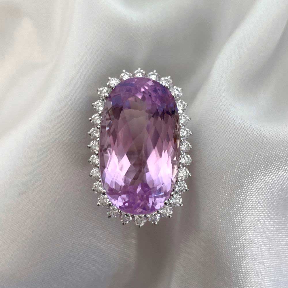 A Word from the Jeweler: I was immediately drawn to the sheer size and beauty of the kunzite center stone, which gives this ring such a commanding presence. What makes it even more special to me is how the diamonds and white gold setting elevate it into a true statement that feels both bold and elegant.