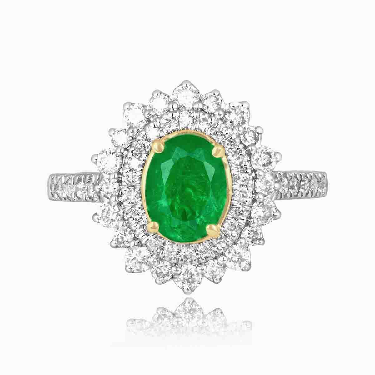 1.00ct Emerald and Diamond Floral Prisa Ring