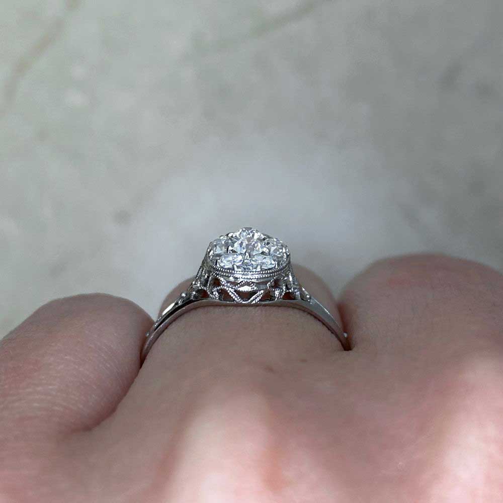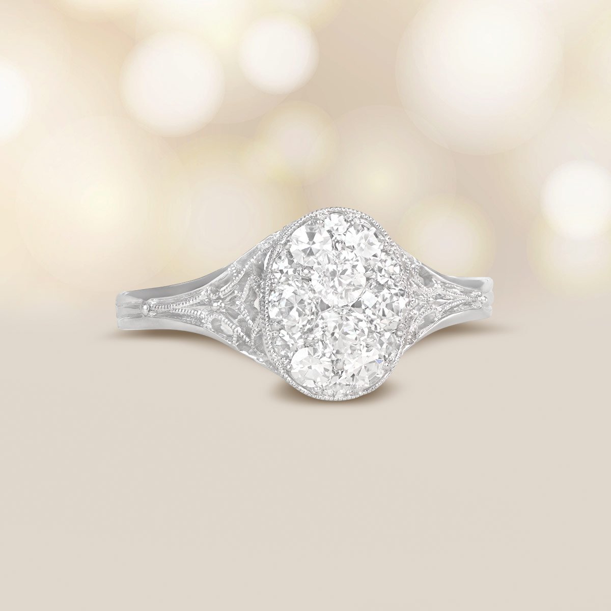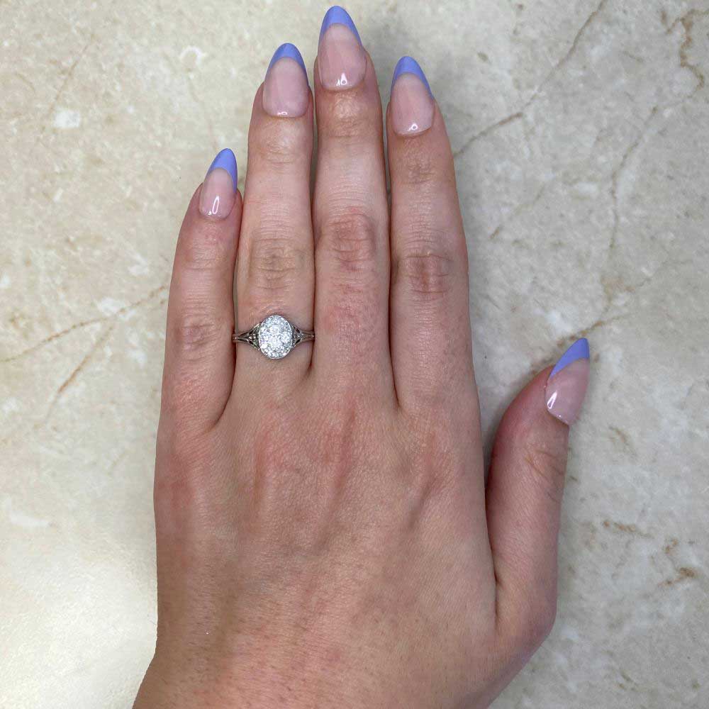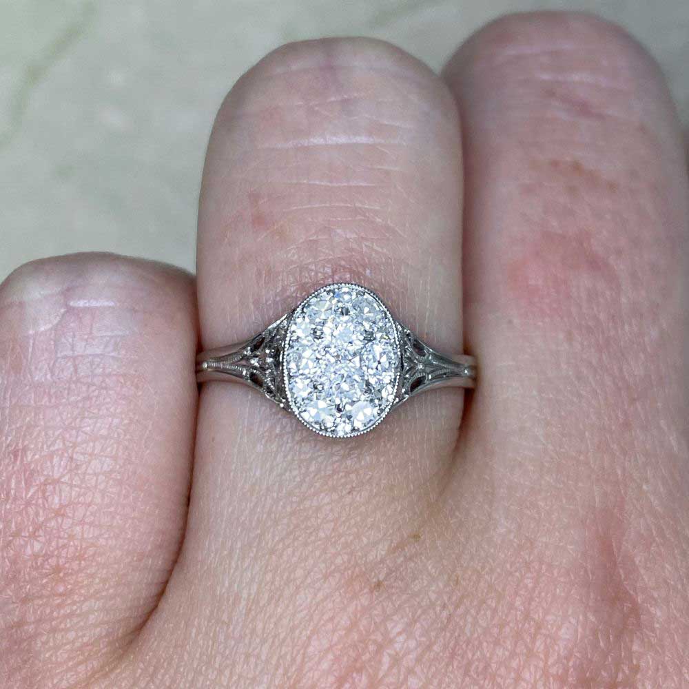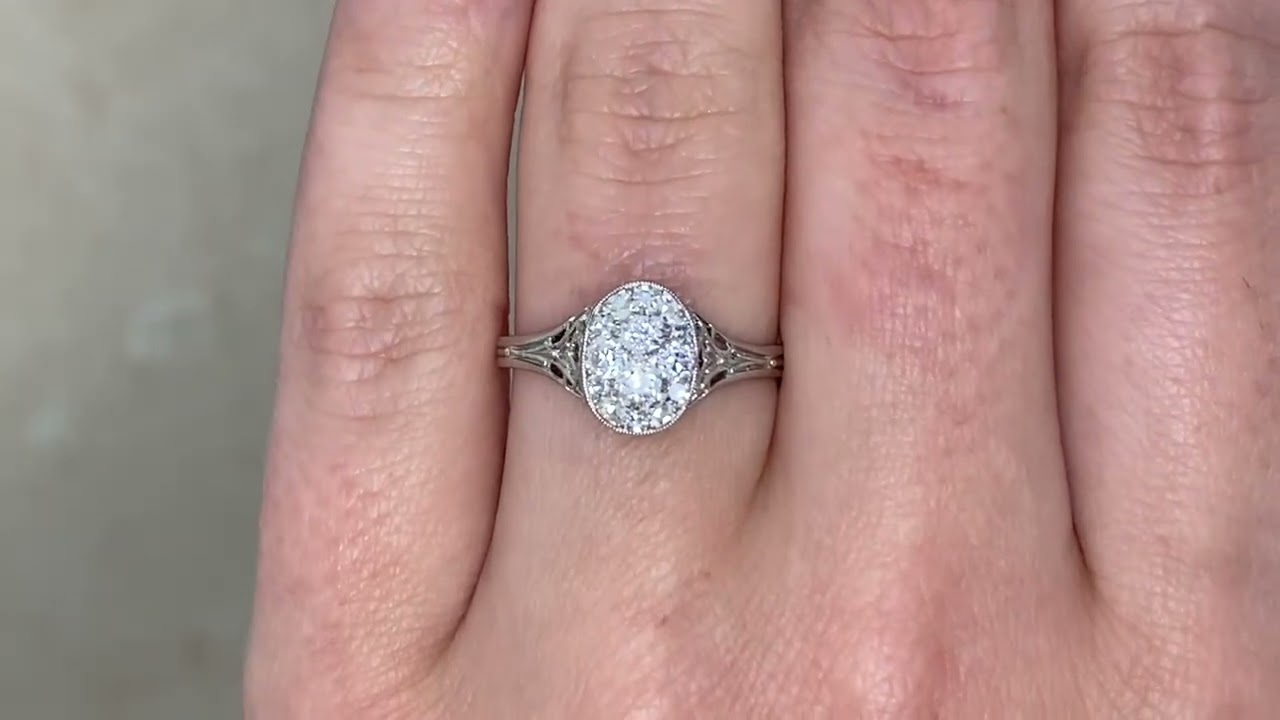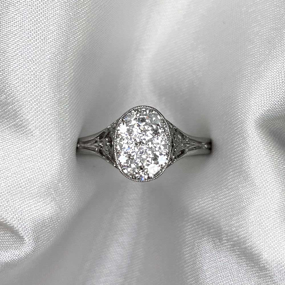 A Word from the Jeweler: I really love how the filigree work showcases the level of craftsmanship that went into creating this ring. The oval-shaped diamond cluster adds such a graceful touch, making it a design I find especially charming.