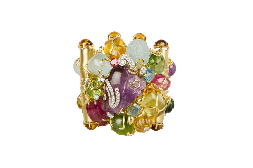 A Word from the Jeweler: I’ve always admired how Seaman Schepps blended bold creativity with impeccable craftsmanship, and this bracelet is a perfect example of that vision. The interplay of yellow and white gold with the gemstones creates a striking design that feels both daring and elegant.