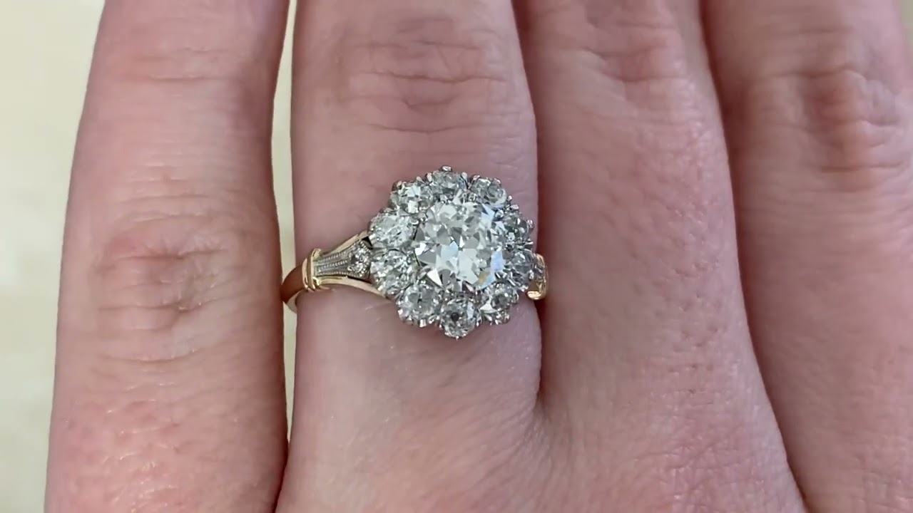 0.96ct Old European Cut Diamond Cluster Yorkshire Ring