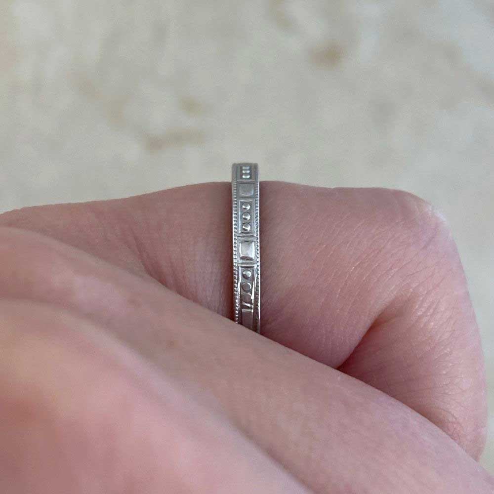 Home / Shop Estate Jewelry Collection / Vintage Wedding Bands / Tiffany & Co Engraved Platinum Wedding Band. 2.3mm