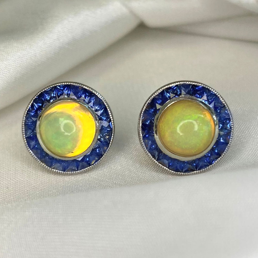 A Word from the Jeweler: I love how the opal’s natural play of color comes to life against the sapphire halo with a combination that feels both classic and full of personality. We selected these earrings for their beautiful balance of color and craftsmanship, which truly sets them apart.