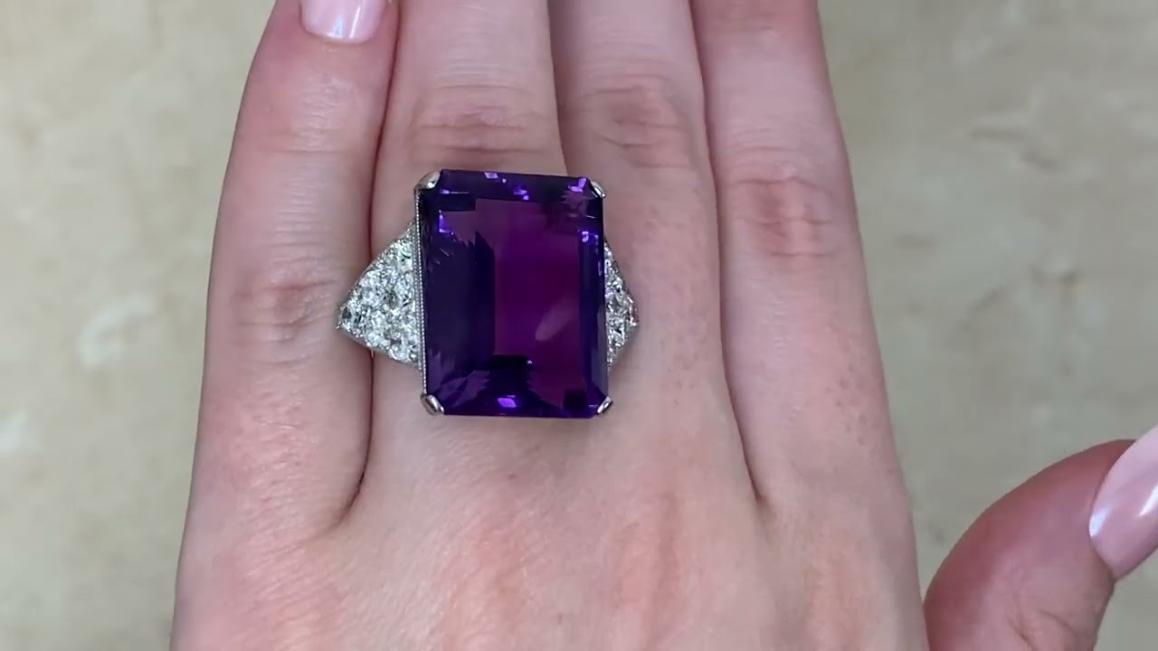 Vintage 26.41ct Emerald-Cut Amethyst and Diamond Ring Tuvalu Ring