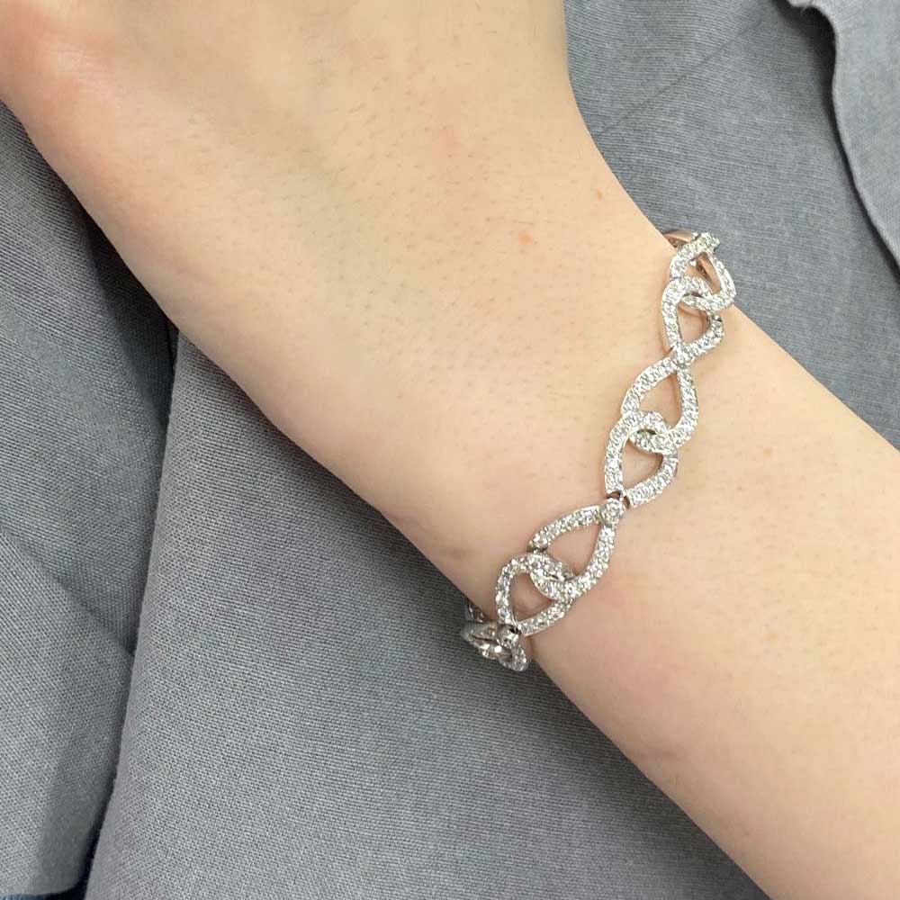 This bracelet’s total approximate diamond weight is 3.50 carats, D-F color, VVS1-VS1 clarity.