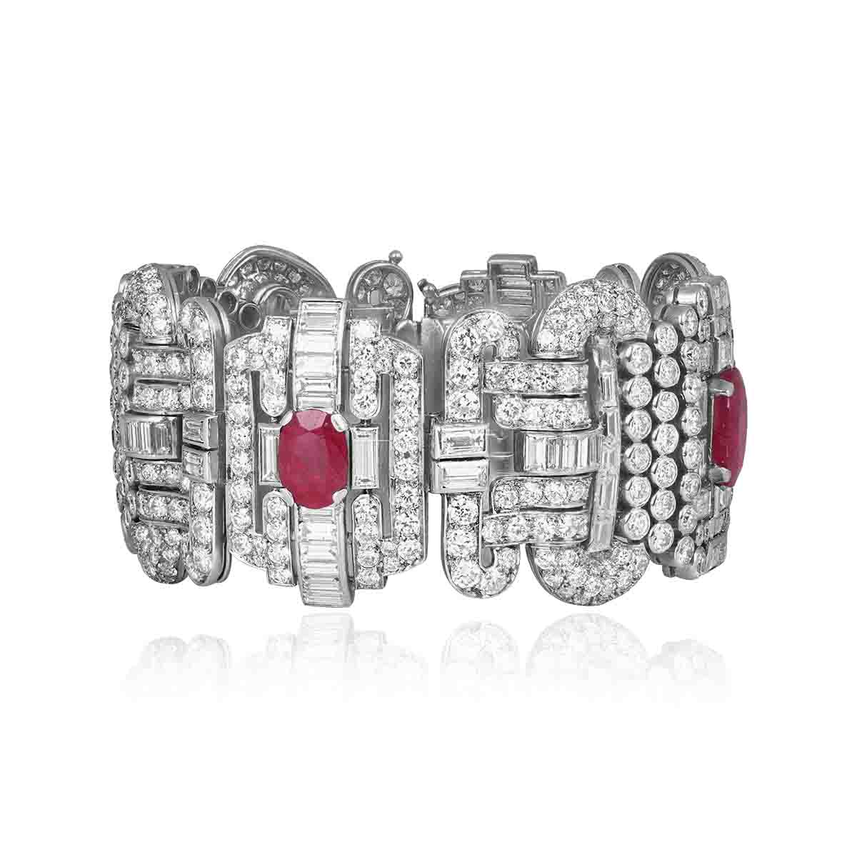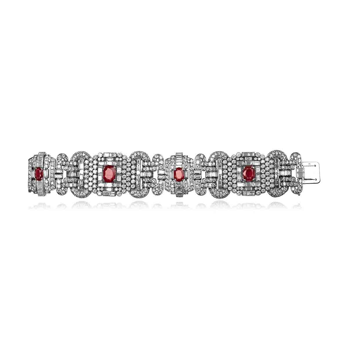 A Word from the Jeweler: I’m drawn to the bold design of this Art Deco bracelet, where the geometric diamond detailing creates such a striking structure. The non-heated Burma rubies make it especially important, adding rarity and color that gives the whole look a glamorous edge.